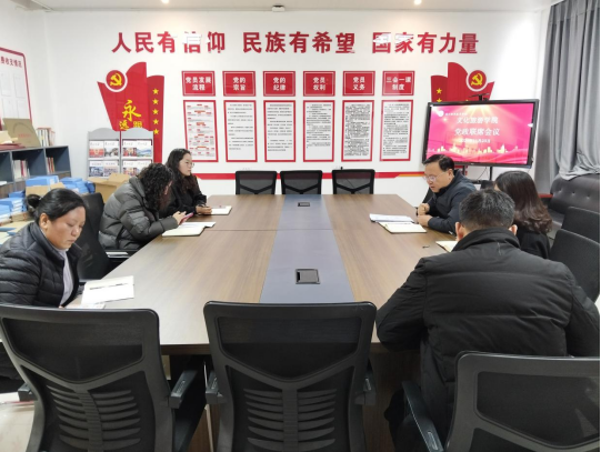 11月25日上午,伟德国际唯一官网入口在五区党员活动室召开党政联席会议。党总支书记展贤东,院长史丽珍,副院长于慧娟、李炯,教务办主任马淼,综合办主任石永丽参加本次会议。会议由展贤东主持。