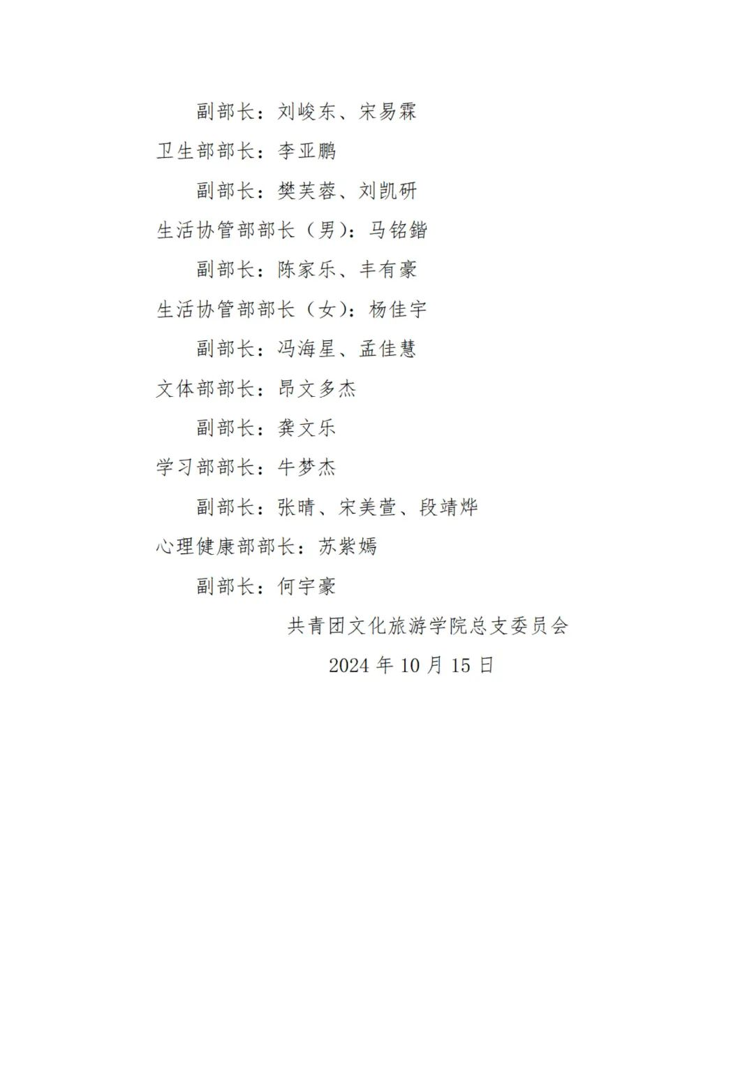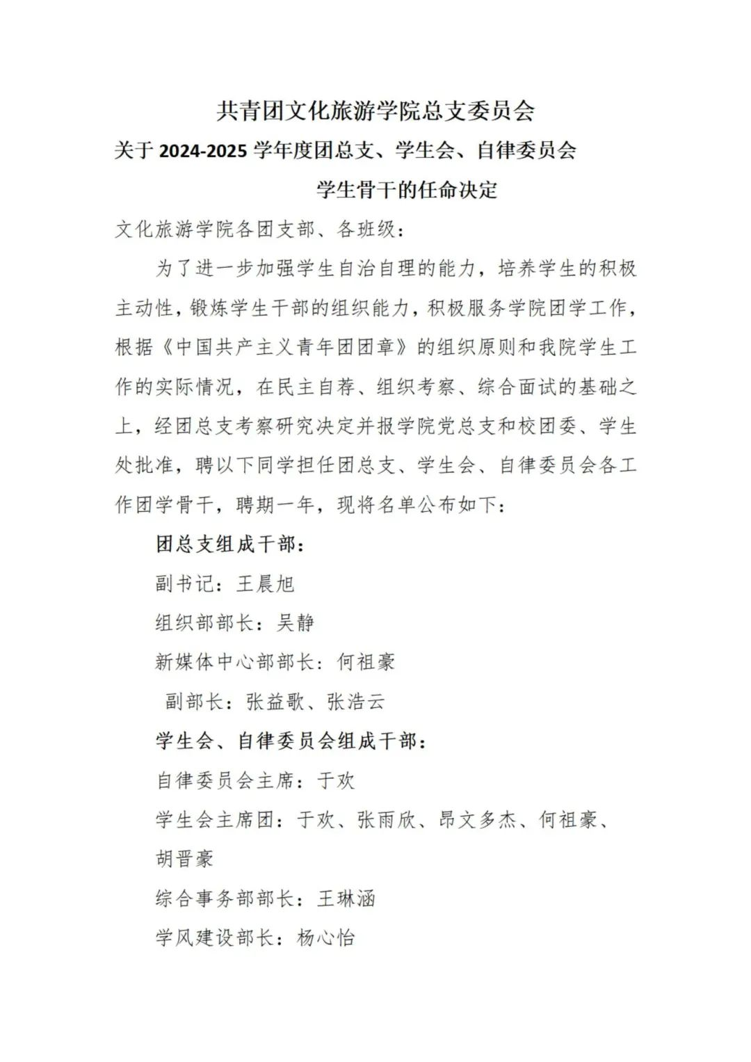 2024-2025团学骨干任命名单如下
