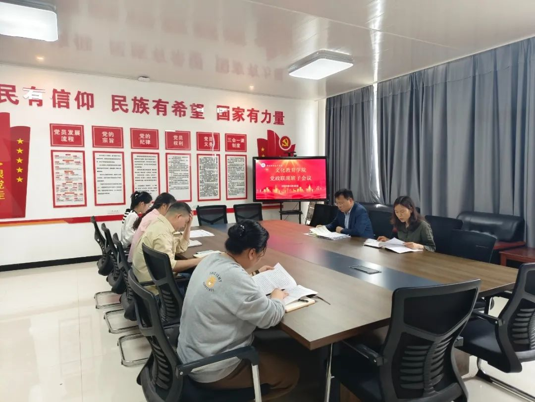4月22日下午,文化教育学院在五区党员活动室召开党政联席会议。学院党总支书记展贤东、院长史丽珍、副院长于慧娟、综合办主任石永丽、教学办主任马淼、学管办主任普俊参加会议。会议由党总支书记展贤东主持。