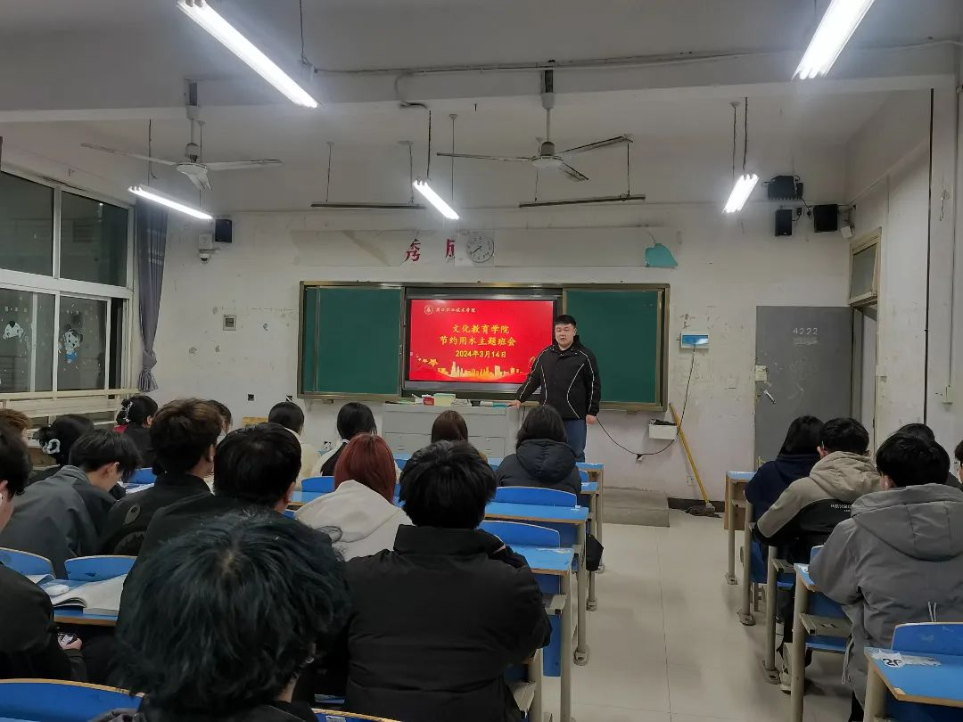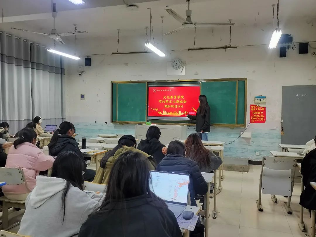 为了引导学生养成节约用水的习惯,保护水资源安全,文化教育学院于3月14日组织班级开展以“节约用水”为主题的班会。
