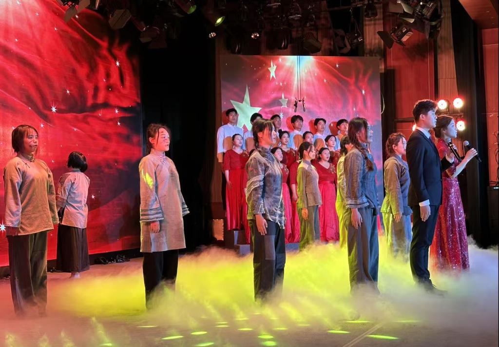 本次参赛作品《巾帼英雄》聚焦抗日民族英雄赵一曼的光辉一生,以诵读与舞台表演相结合的形式,生动再现了她为国为民的热血征程。剧目循着时间脉络铺陈展开:从她主动投身抗日救亡运动,辞别幼子奔赴东北抗日游击战场,带领战士们在林海雪原间与日寇展开艰苦卓绝的斗争;到不幸被俘后,面对日寇的严刑拷打与威逼利诱,始终坚贞不屈,严守党的秘密,用钢铁般的意志诠释共产党人的初心与信仰;再到生命的最后时刻,她写下遗书,字字句句饱含对儿子的思念与对革命事业的坚定信念,最终高唱《国际歌》从容就义。
