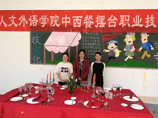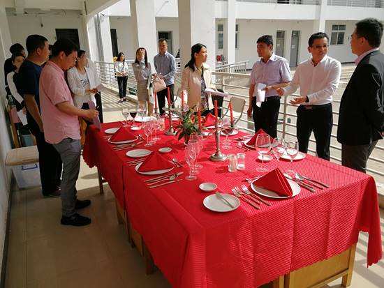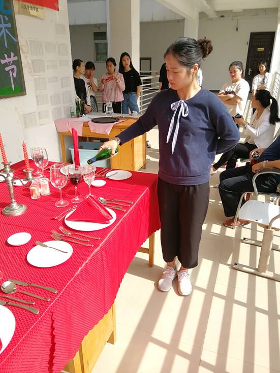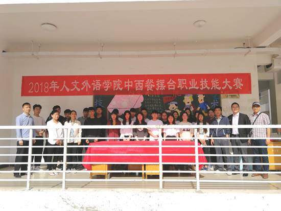 2018年5月4日,人文外语学院举行了2018年中西餐摆台职业技能大赛在我院一楼举行并取得圆满成功。参赛选手服务技能扎实干练,精神风貌自信饱满;指导老师悉心负责,一丝不苟。学院领导班子,教务处付处长,钱处长等相关领导莅临大赛现场进行观摩指导。2018年人文外语学院中西餐摆台职业技能大赛中张译文、郑丽歌、高南南等6位选手分别获得一、二、三等奖。