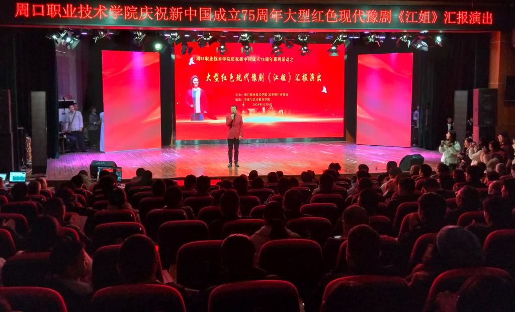 为新中国成立75周年,加强同学们的爱国主义教育,12月6日下午,BV伟德官方网站在开元校区砺德厅开展大型红色现代豫剧《江姐》汇报演出。伟德国际唯一官网入口班子成员、教师代表、学生代表参加此次展演活动。