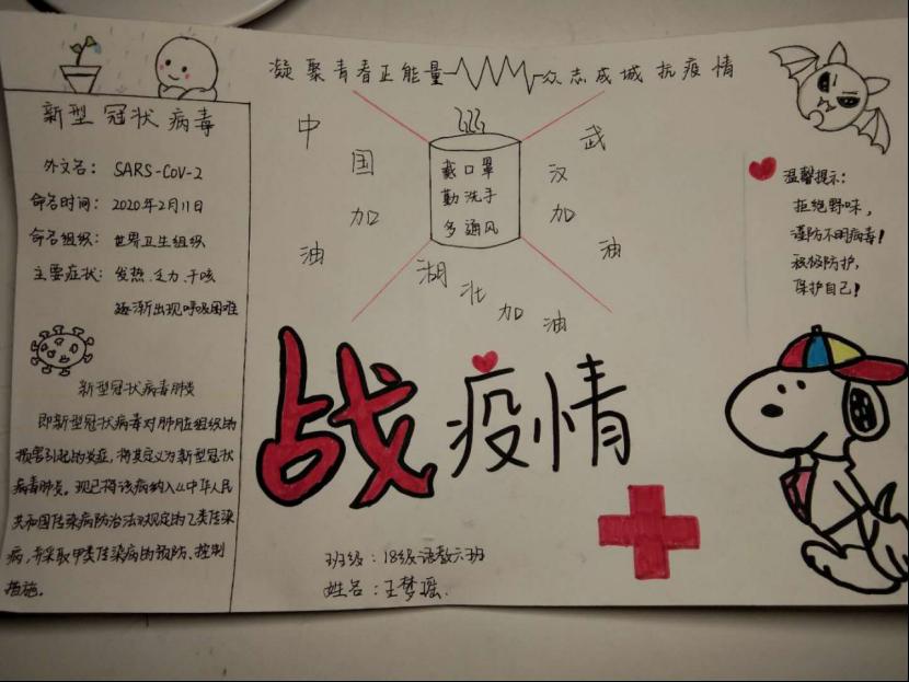 当前,新冠肺炎疫情形势依然严峻,全国人民都投入到这场看不到硝烟的抗疫战争,众志成城、共抗疫情!我院学子用不同方式展现坚决打赢疫情防控阻击战的信心、决心。展现出当代周职学子的青春担当。