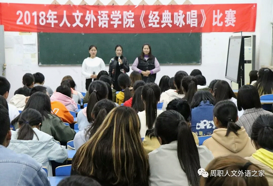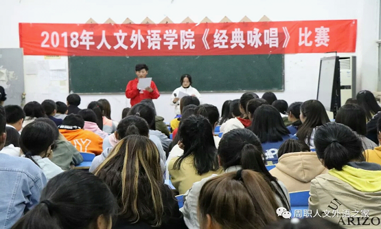 为丰富校园文化生活,提升学生素质,培养学生对中华经典文化的认知,增强同学们的凝聚力和向心力,人文外语学院于10月23日举办了《经典咏唱》比赛。
