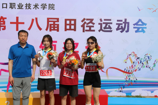 在第十八届田径运动会中,我院运动员以顽强拼搏的毅力,荣获多项荣誉。分别获得金牌4块、银牌7块、铜牌10块。 其中,我院贺鑫悦、赵锦萱、陈晓椿、李旭东分别在女子100米、女子铅球、女子三级跳、男子1500米比赛中荣获金牌。
