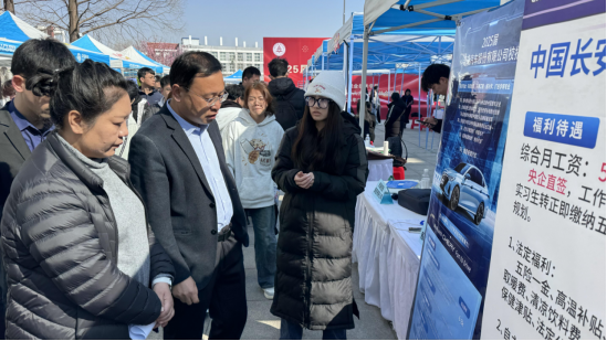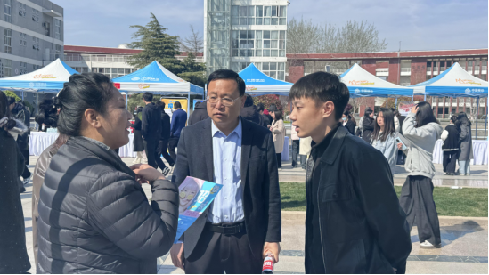 我院党总支书记展贤东、副院长于慧娟、就业指导员李敬敏深入双选会现场,了解就业市场和专业需求情况,主动与本学院专业结合紧密的行业企业进行沟通,了解岗位技能要求、职业发展路径等,为后续教学计划调整收集一手资料。遇到紧张的同学,我院领导及时鼓励,传授面试技巧。在这忙碌的现场,院领导成为学生求职路上的暖心助力者。